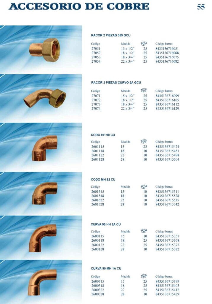 Catalogo de accesorios de cobre para fontaneria