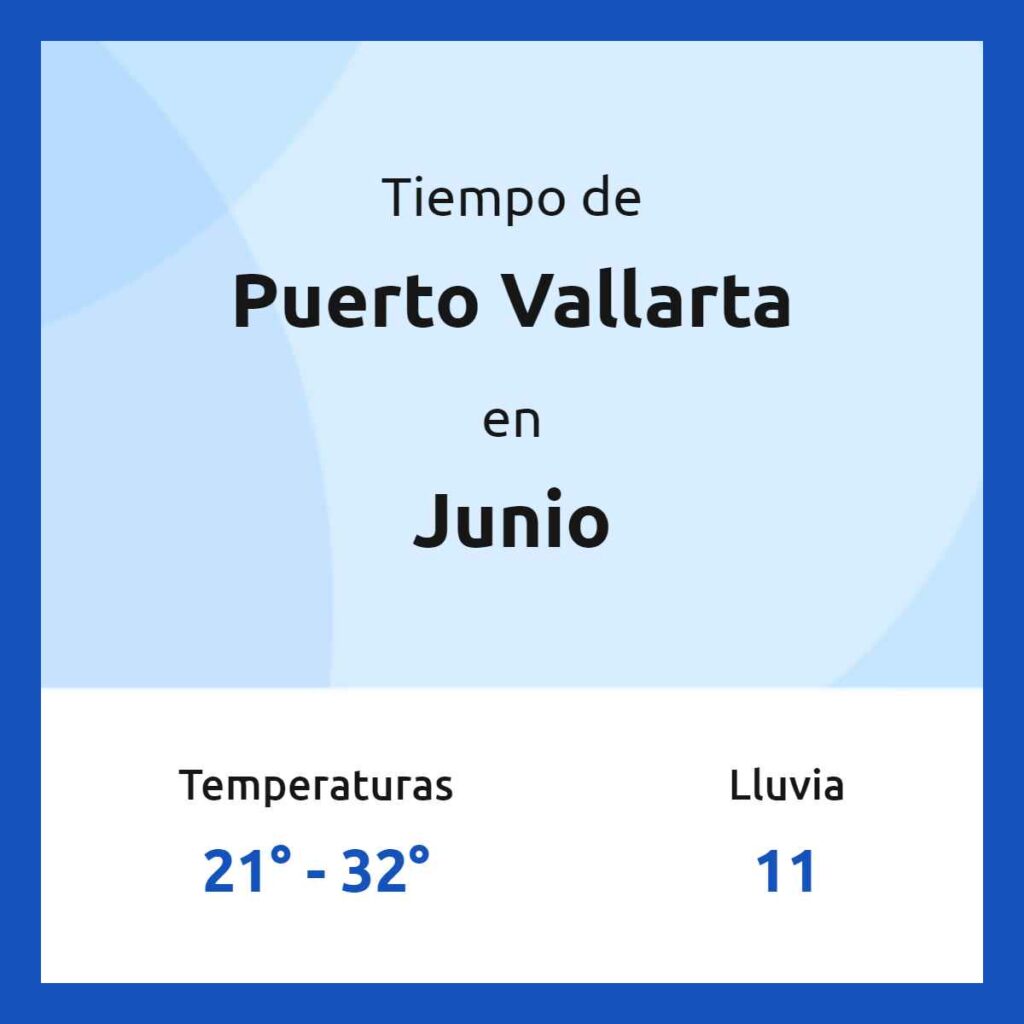Durante el mes de junio en Puerto Vallarta, las temperaturas son cálidas y oscilan entre los 25 y 31 grados Celsius durante el día. Por la noche, la temperatura baja a alrededor de 20 grados Celsius. Las temperaturas del agua del mar durante este mes van de los 26 a los 28 grados Celsius, lo que lo hace perfecto para nadar y practicar deportes acuáticos.